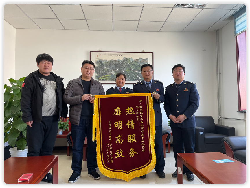 2022年3月7日,北京市汽車(chē)解體廠(chǎng)將一面印有“熱情服務(wù),廉明高效”的錦旗送到昌平區(qū)稅務(wù)局南口稅務(wù)所。對(duì)南口稅務(wù)所一直以來(lái)對(duì)我企業(yè)熱情周到、廉明高效的服務(wù),我企...