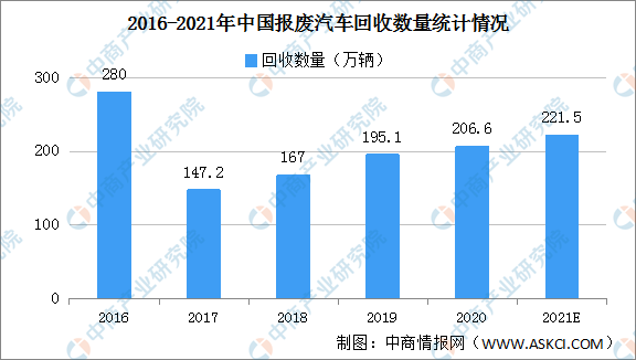 一般來(lái)說(shuō),各類汽車的生命期為8—15年。一旦超過(guò)使用年限或因交通事故形成安全隱患,則需要進(jìn)行報(bào)廢處理。近年來(lái),國(guó)家層面出臺(tái)了一系列汽車報(bào)廢回收政策及再生資源政策,無(wú)疑利好汽車拆解行業(yè)發(fā)展。例如,2020年7月31日,商務(wù)部審議通過(guò)《報(bào)廢機(jī)動(dòng)車回收管理辦法實(shí)施細(xì)則》,鼓勵(lì)報(bào)廢機(jī)動(dòng)車回收拆解行業(yè)市場(chǎng)化、專業(yè)化、集約化發(fā)展,推動(dòng)完善報(bào)廢機(jī)動(dòng)車回收利用體系,提高回收利用效率和服務(wù)水平。汽車報(bào)廢回收政策及再生資源政策為汽車拆解行業(yè)提供了良好的政治環(huán)境。