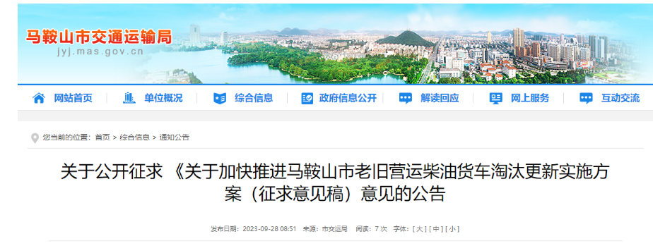 四、安徽省馬鞍山市交通運輸局關(guān)于加快推進馬鞍山市老舊營運柴油貨車淘汰更新實施方案(征求意見稿)